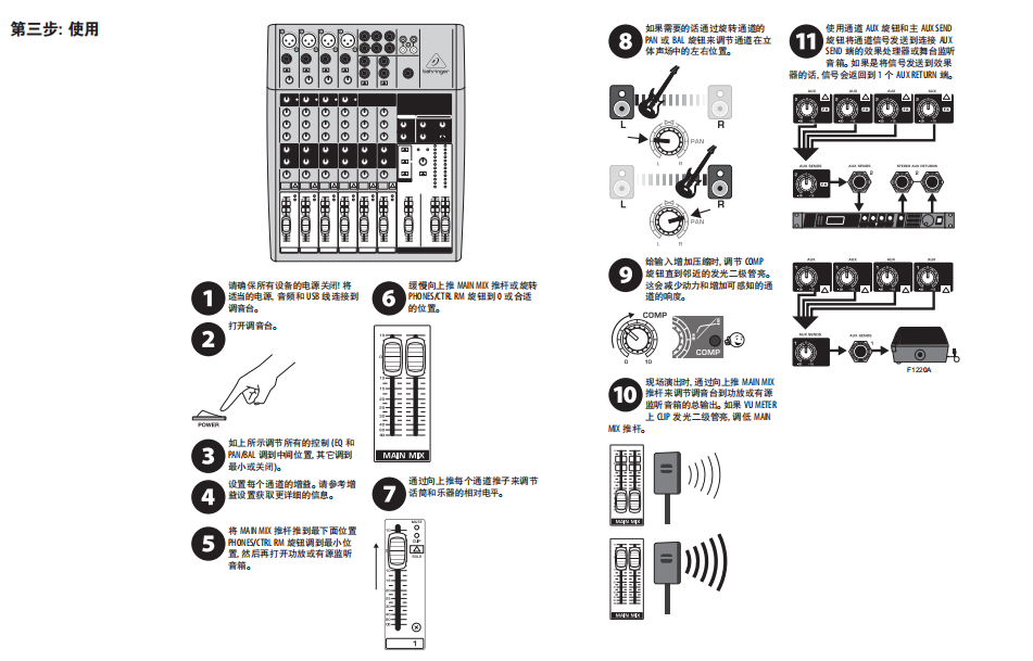 - 2个多功能立体声辅助回送接口,提供很大的灵活性