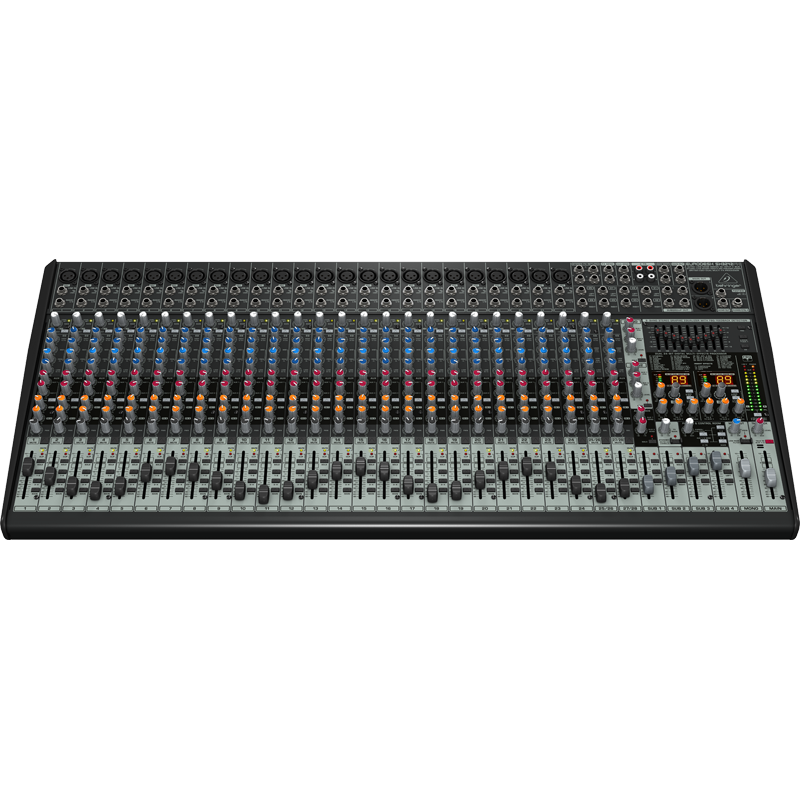 产品描述:24路单声道 / 2路立体 / 4编组调音台 / 双效果 / 高精度 9 频段立体声图形均衡器