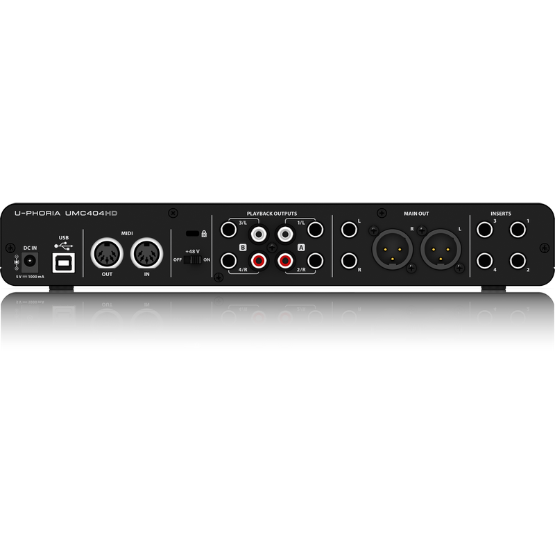 的时候让历史记录在你的Mac或Windows电脑,插入麦克风,仪器或线路电平来源/ TRS UMC404HD 4组合的XLR输入的终极工作室灵活性!连接和沟通与MIDI设备添加工作流控制表面的好处你的工作室。